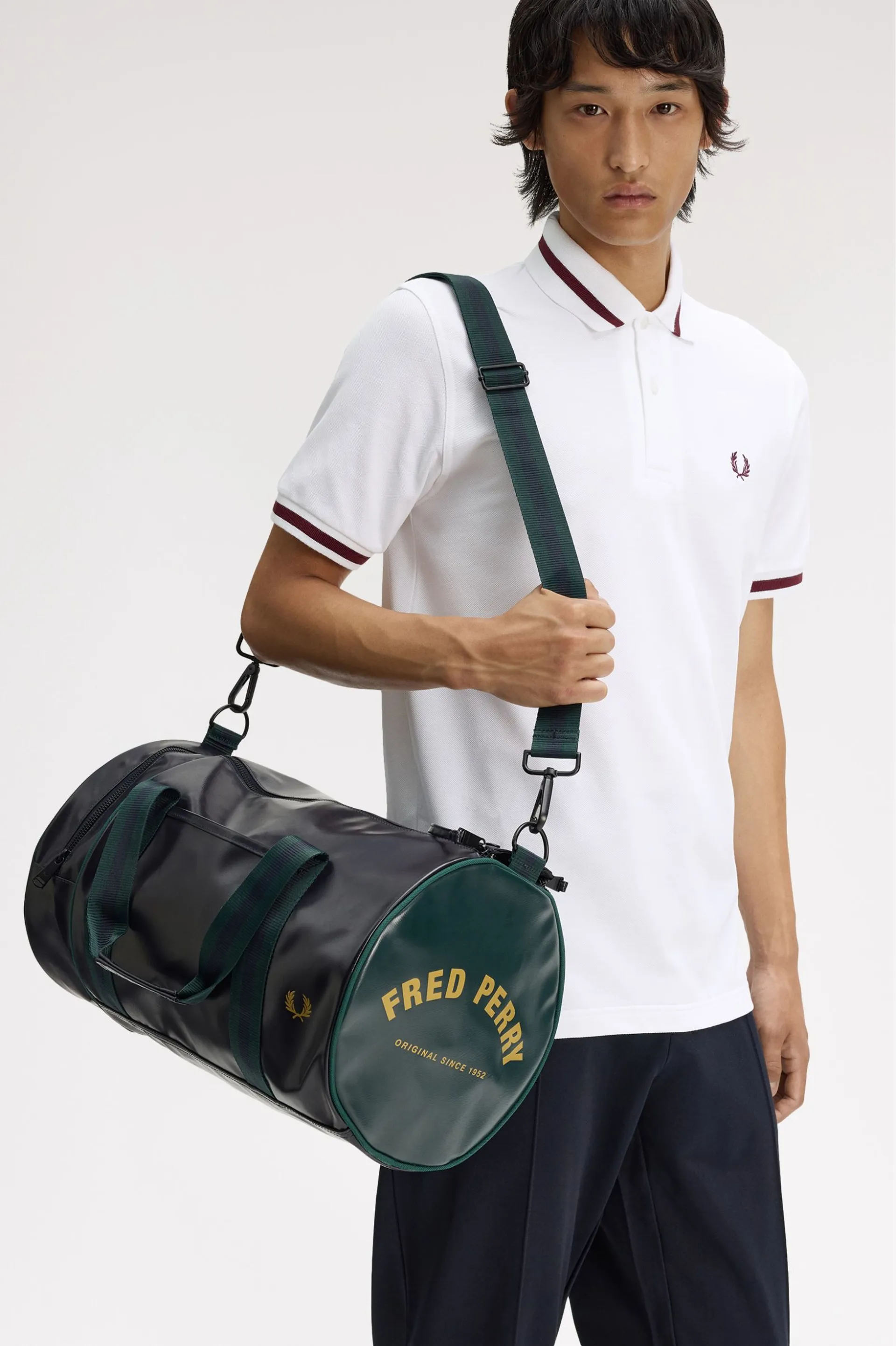 Designed to weather in over the years, it retains all of the classic sporting features - a double zip top opening with a rounded end pocket; adjustable crossbody straps and two main handles with our contrast tipping; contrast printed branding on both ends; and an embossed gold foil Laurel Wreath to the front panel - as if it wasn't already unmistakably Fred Perry.