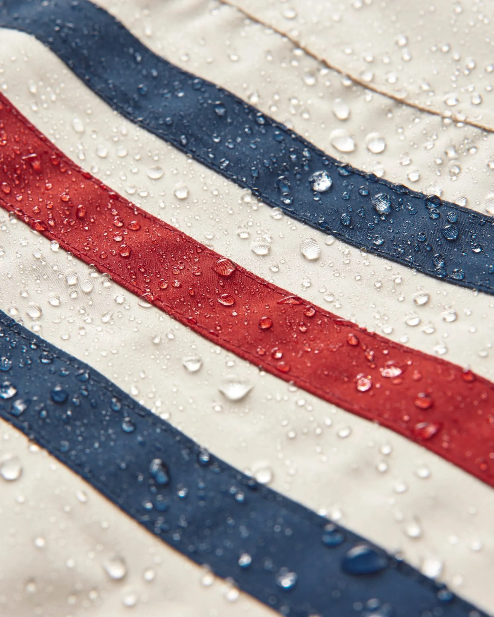 The Aston Cream Freo Jacket builds on the legacy of the original, now featuring a 100% recycled nylon face for improved sustainability. Seam-taped throughout and both waterproof and windproof, it’s designed for reliable performance in changing conditions. A roll-away hood offers additional protection from the elements, while a soft fleece lining adds insulation and comfort during transitional weather. The look is completed with the iconic Freo stripe detail, a hallmark of this timeless outerwear style.