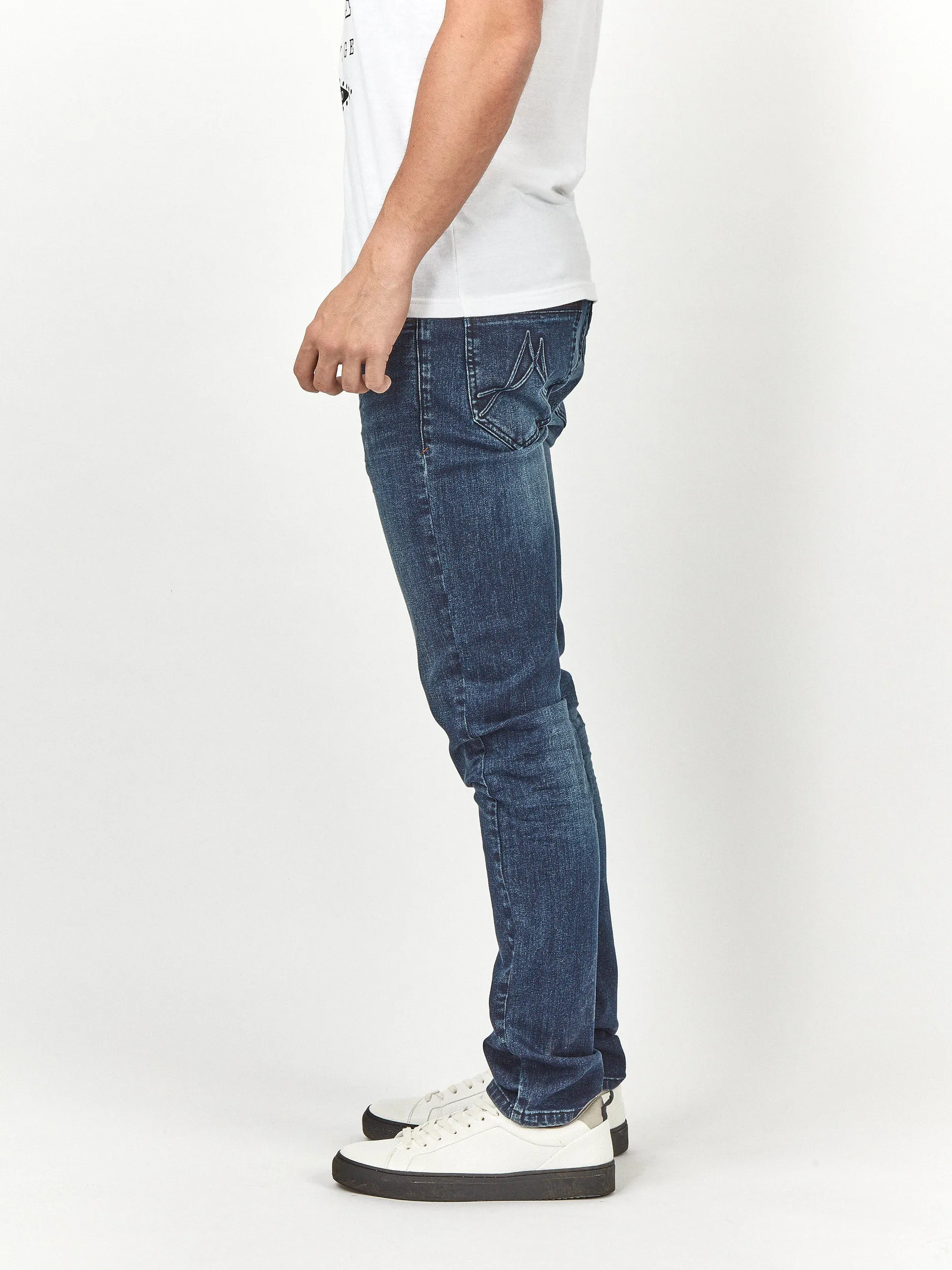 Mish Mash Harley Tapered Fit jean featuring a slight stretch to allow a comfortable fit whilst keeping the classic appearance of denim. Hand finished with double seaming around the pockets combined with indigo stitching