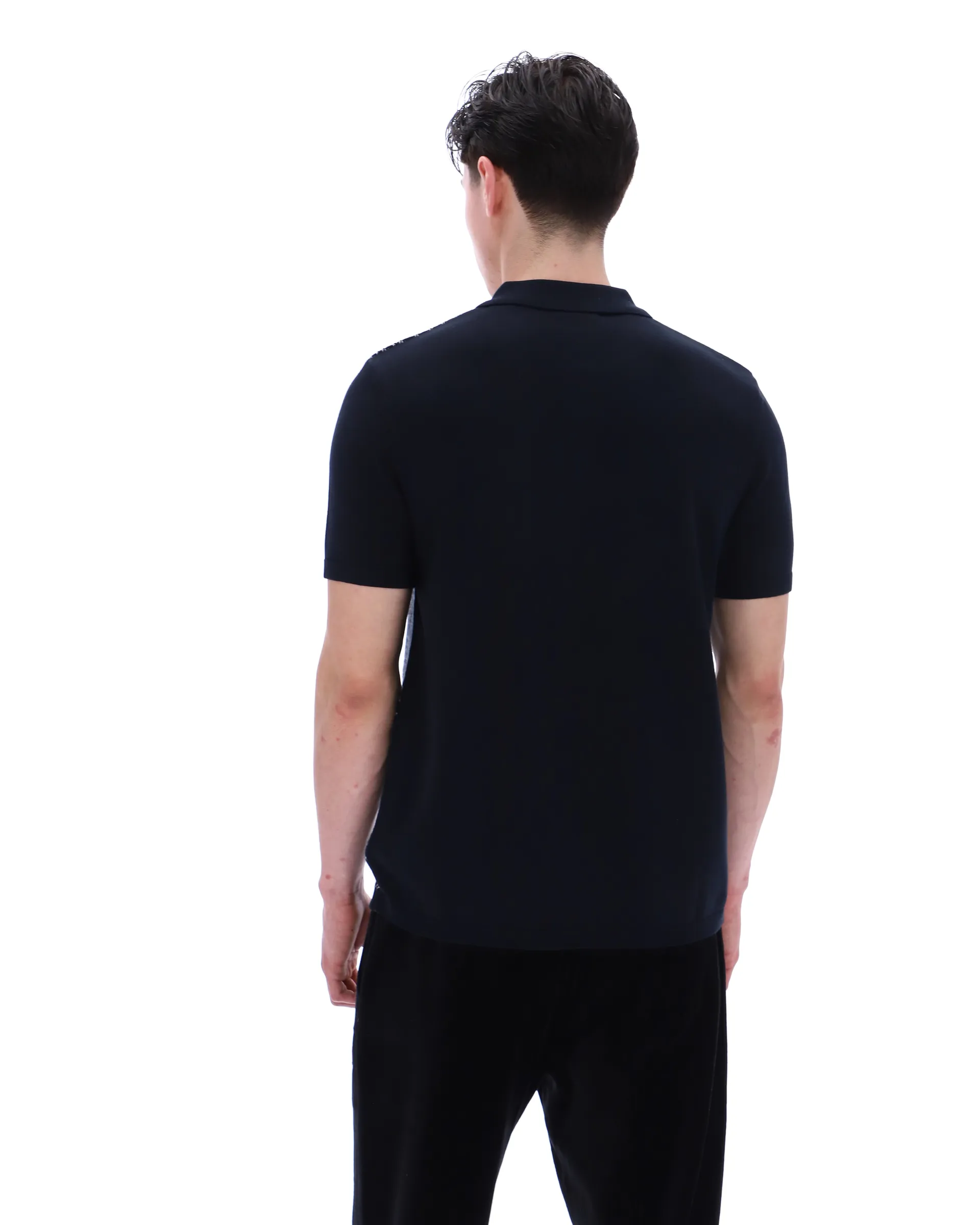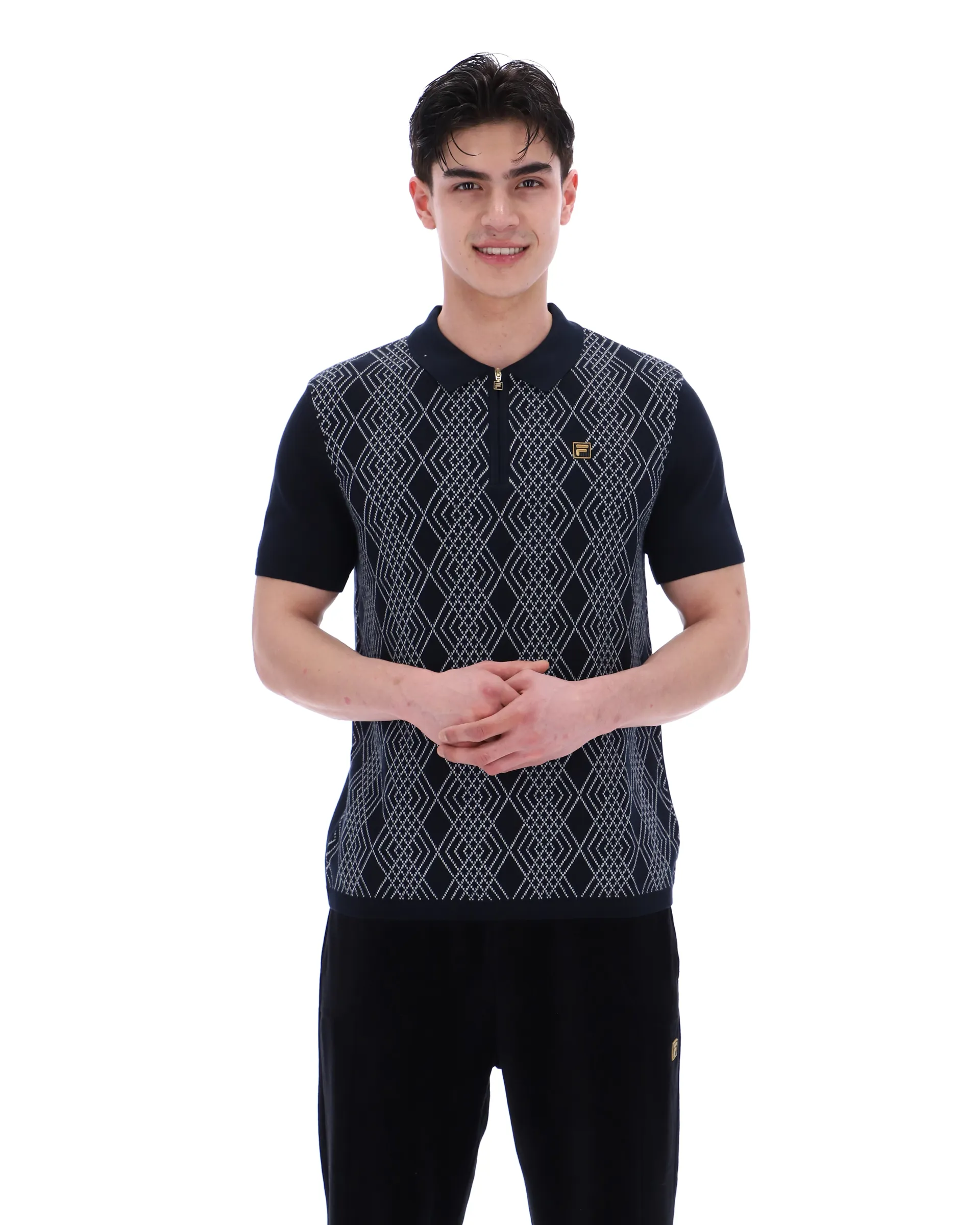 Fila Castello Jacquard Knitted Polo with Zip Black