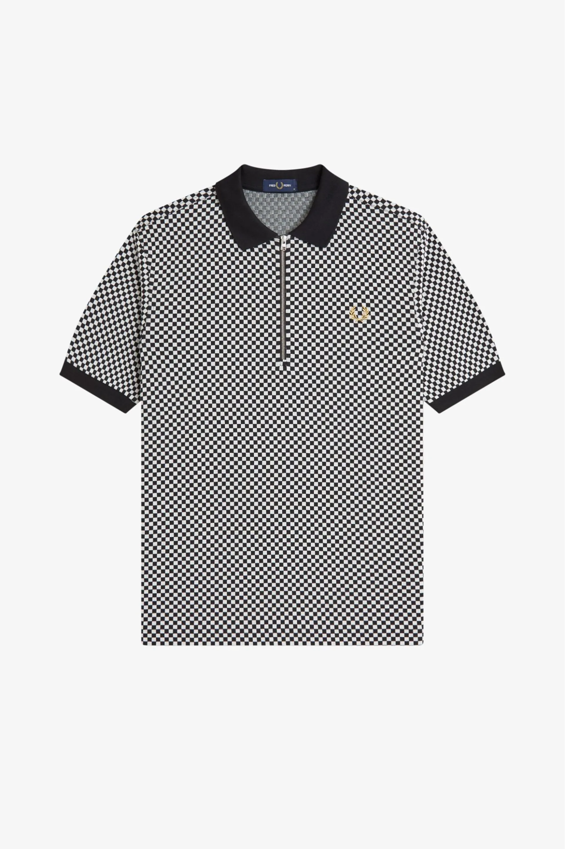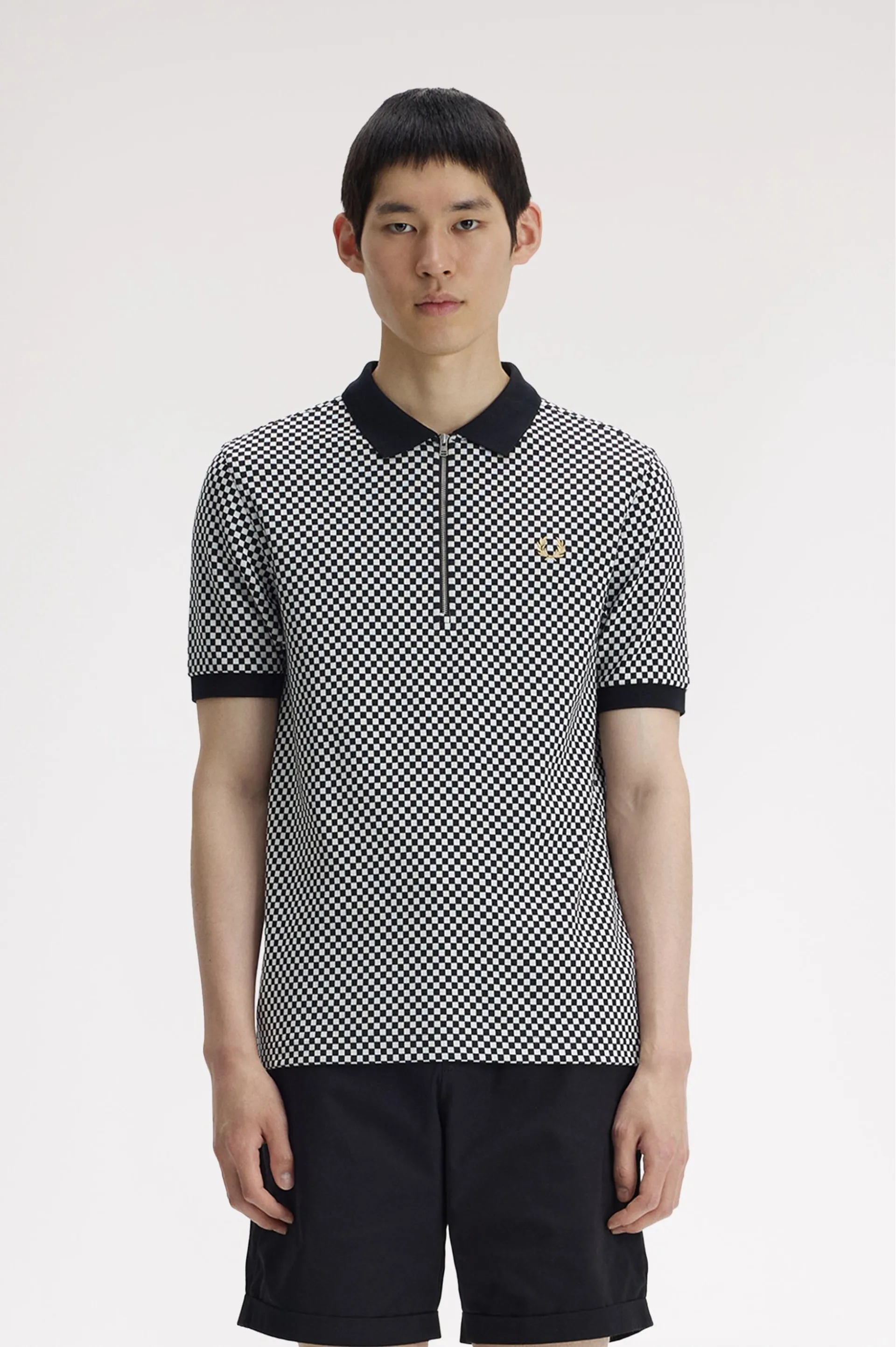 Fred Perry Chequerboard Zip Polo Shirt Black / White