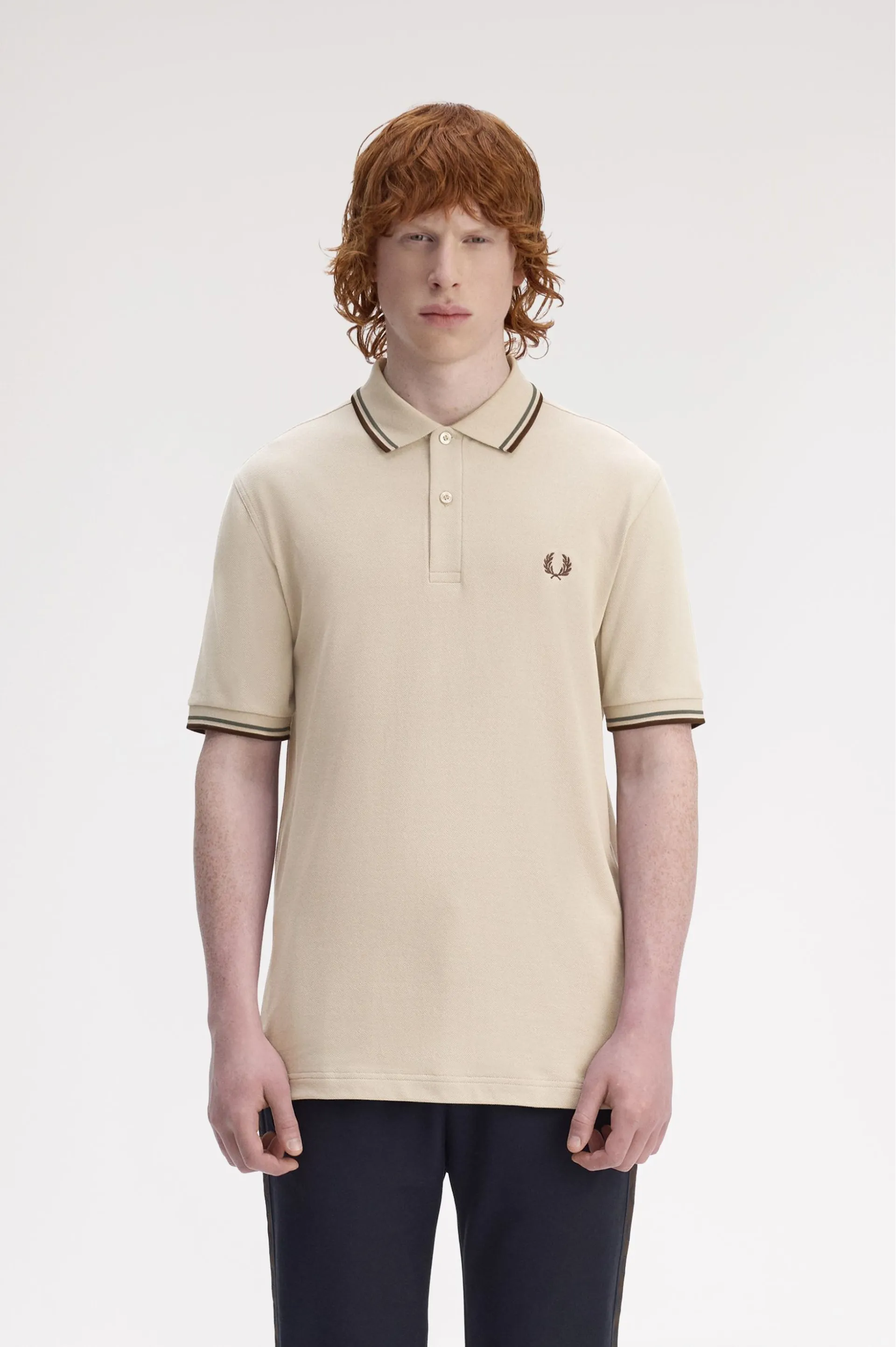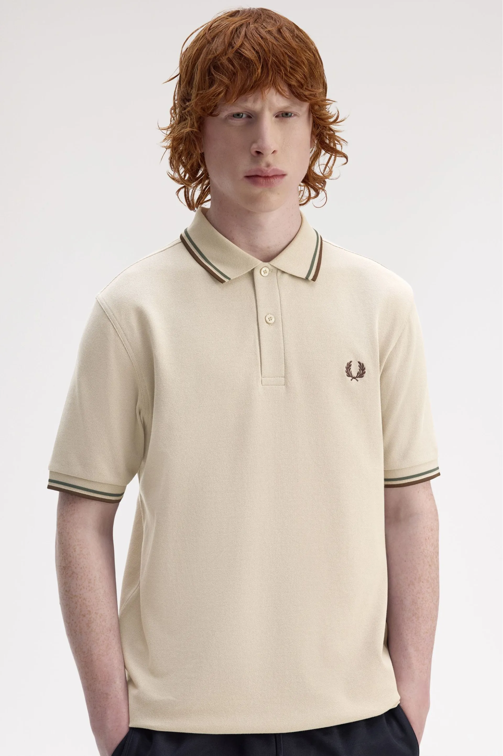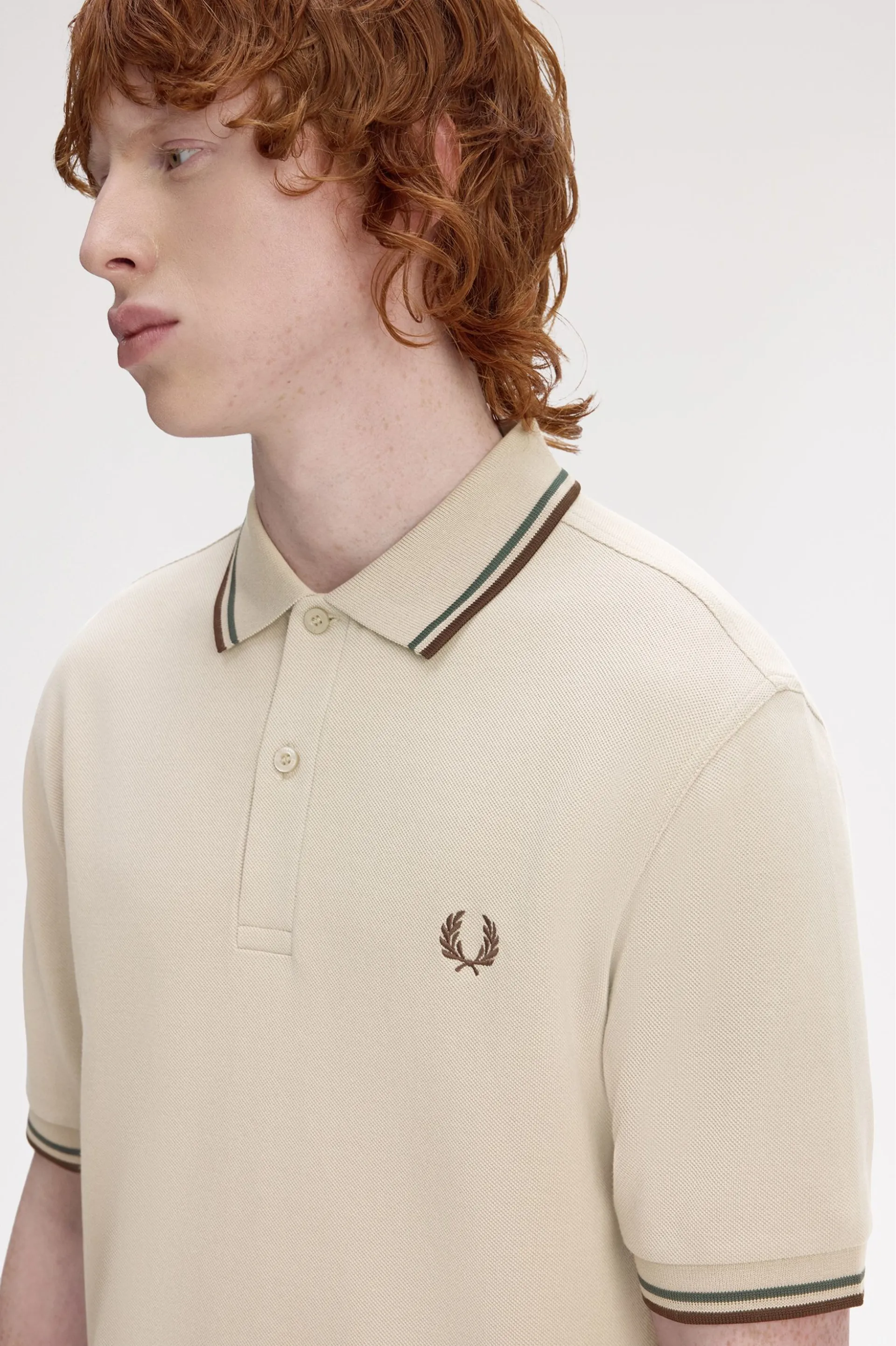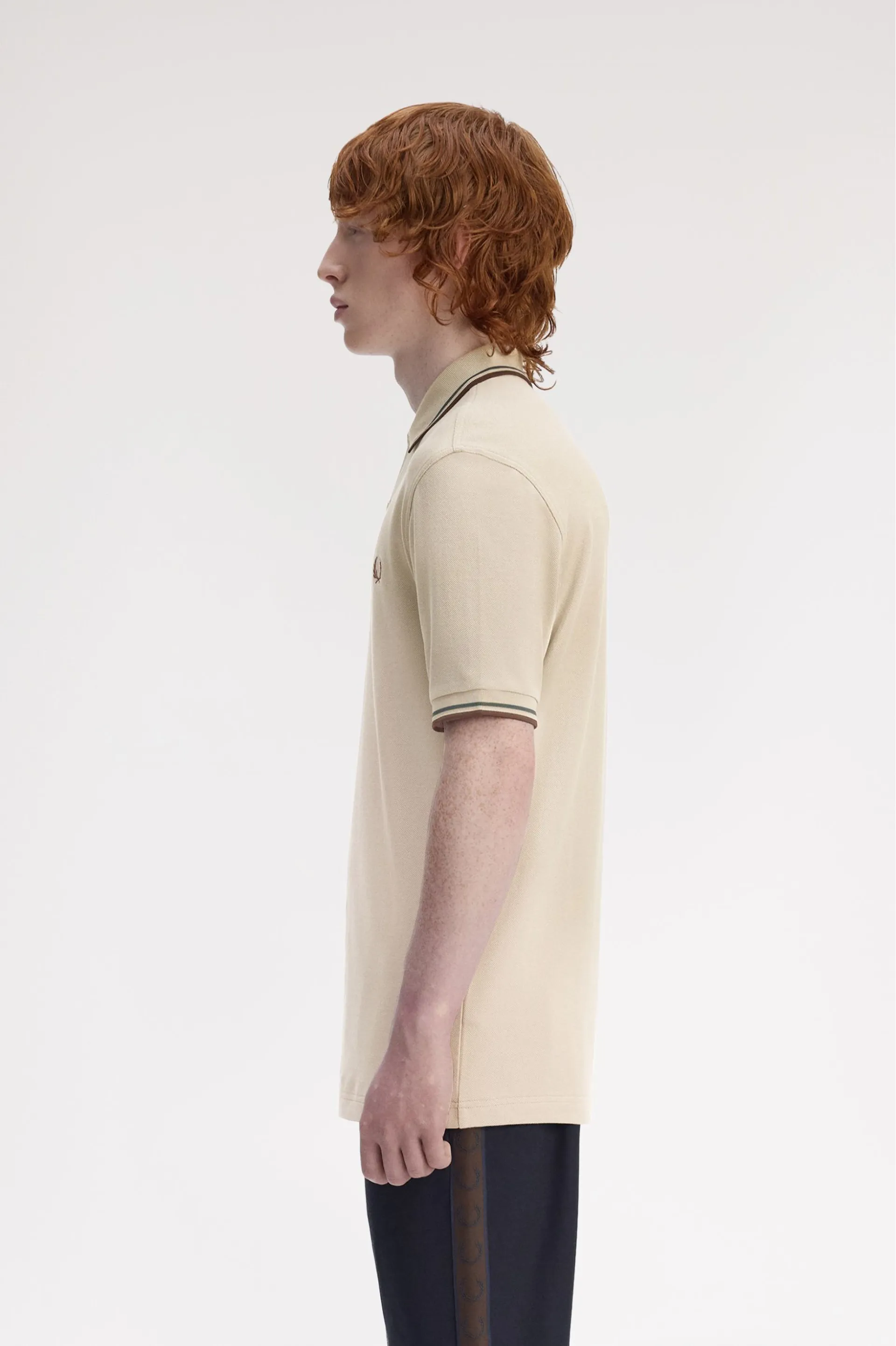 Fred Perry M3600-50A Polo T-shirt Warm Oat / Court Green / Burnt Tobacco