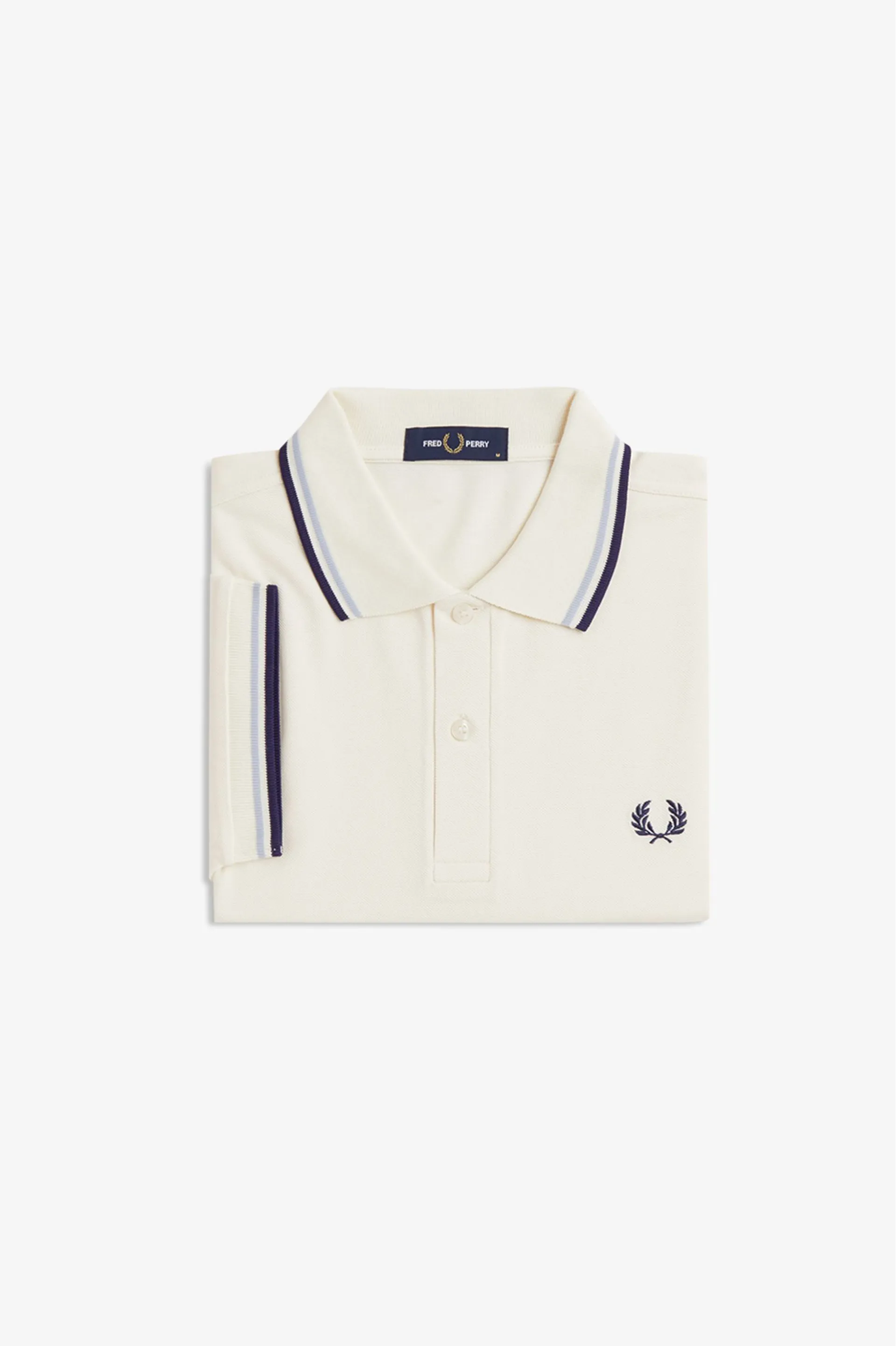 Question(s) answered about Fred Perry M3600-94B Polo T-shirt Ecru / Blue / Navy