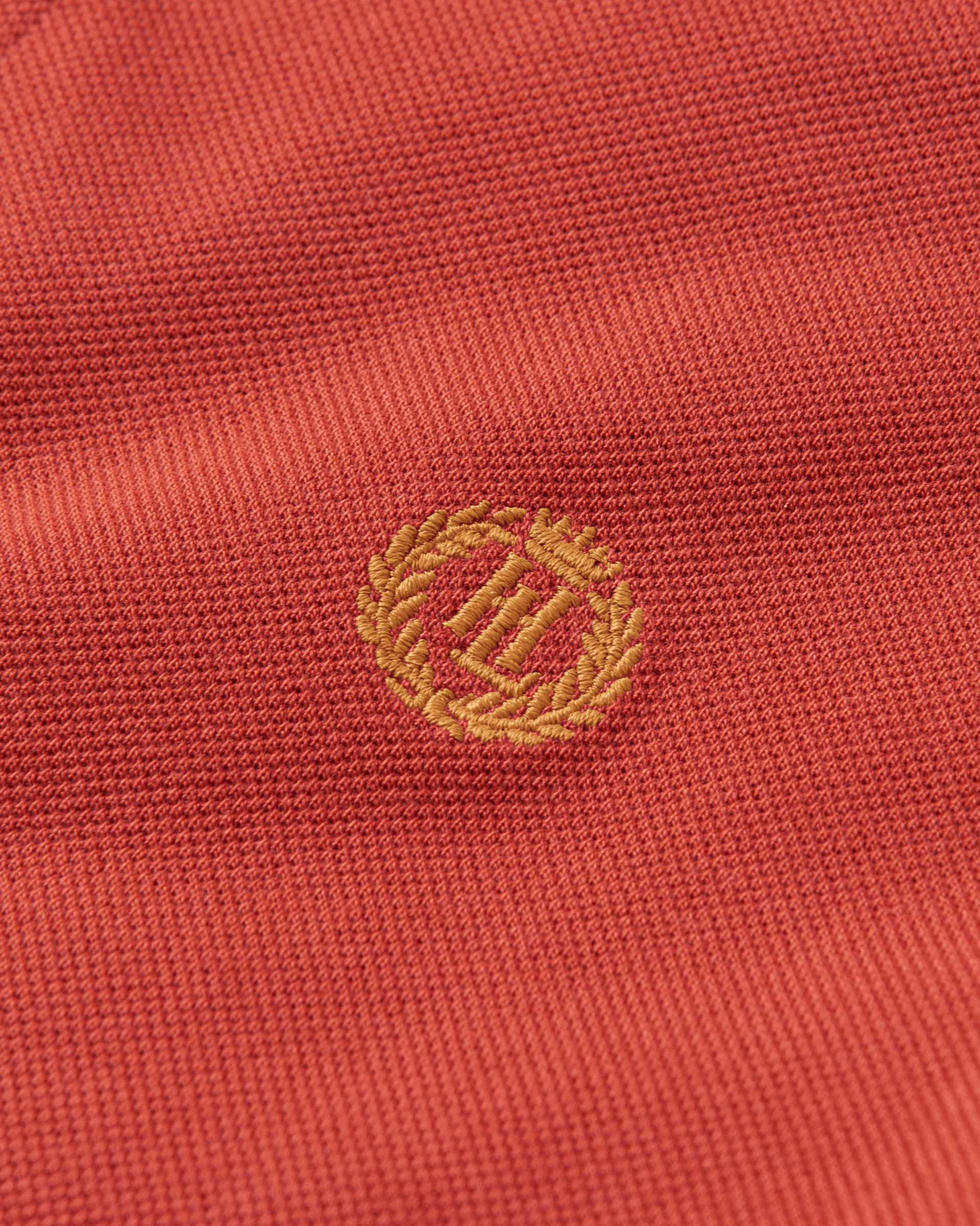 Timeless and versatile, this short sleeve polo is made from 100% organic cotton in a breathable pique knit. Detailed with ribbed collar and cuffs, a buttoned centre front placket, and tonal Laurel and Crown embroidery at the chest.