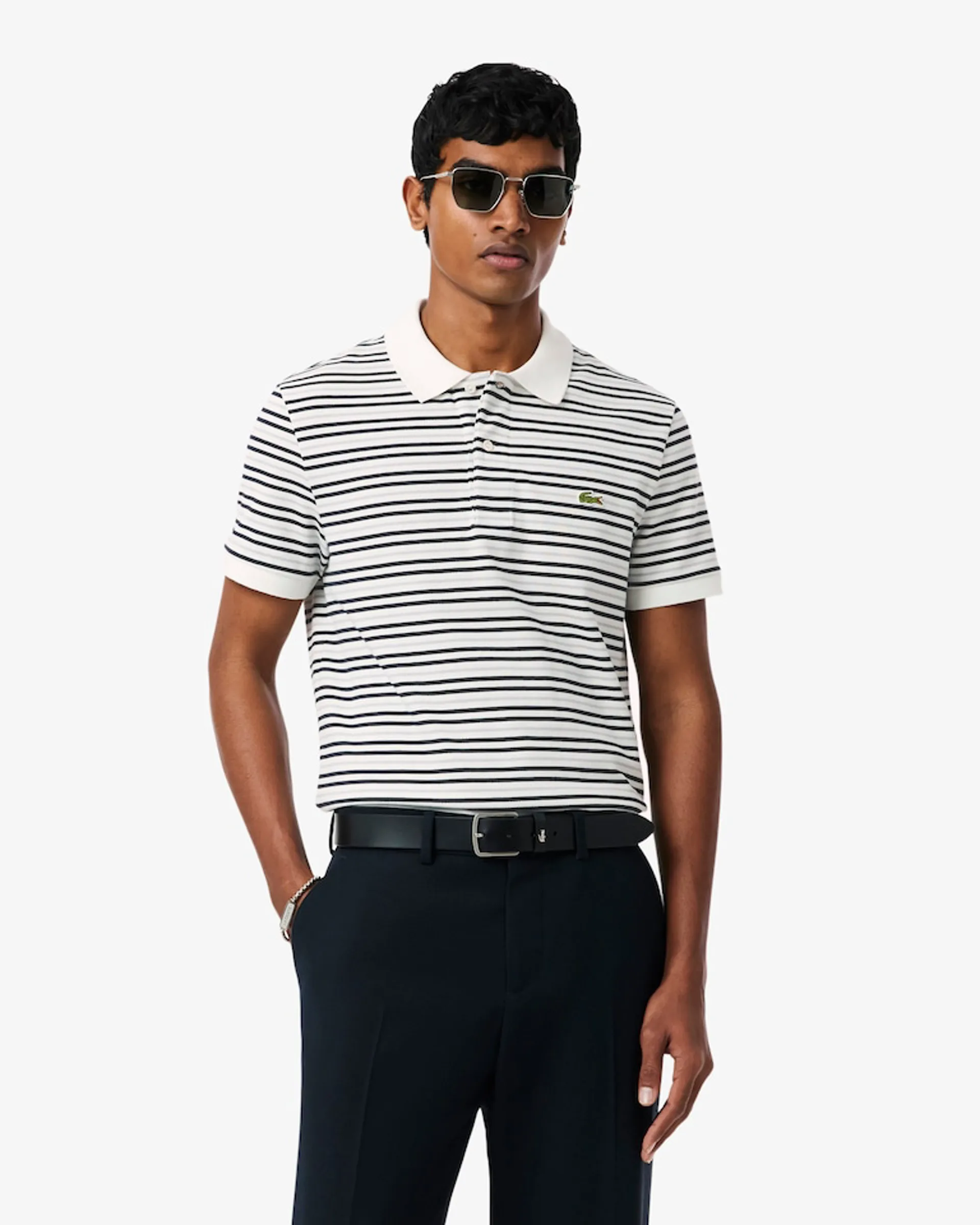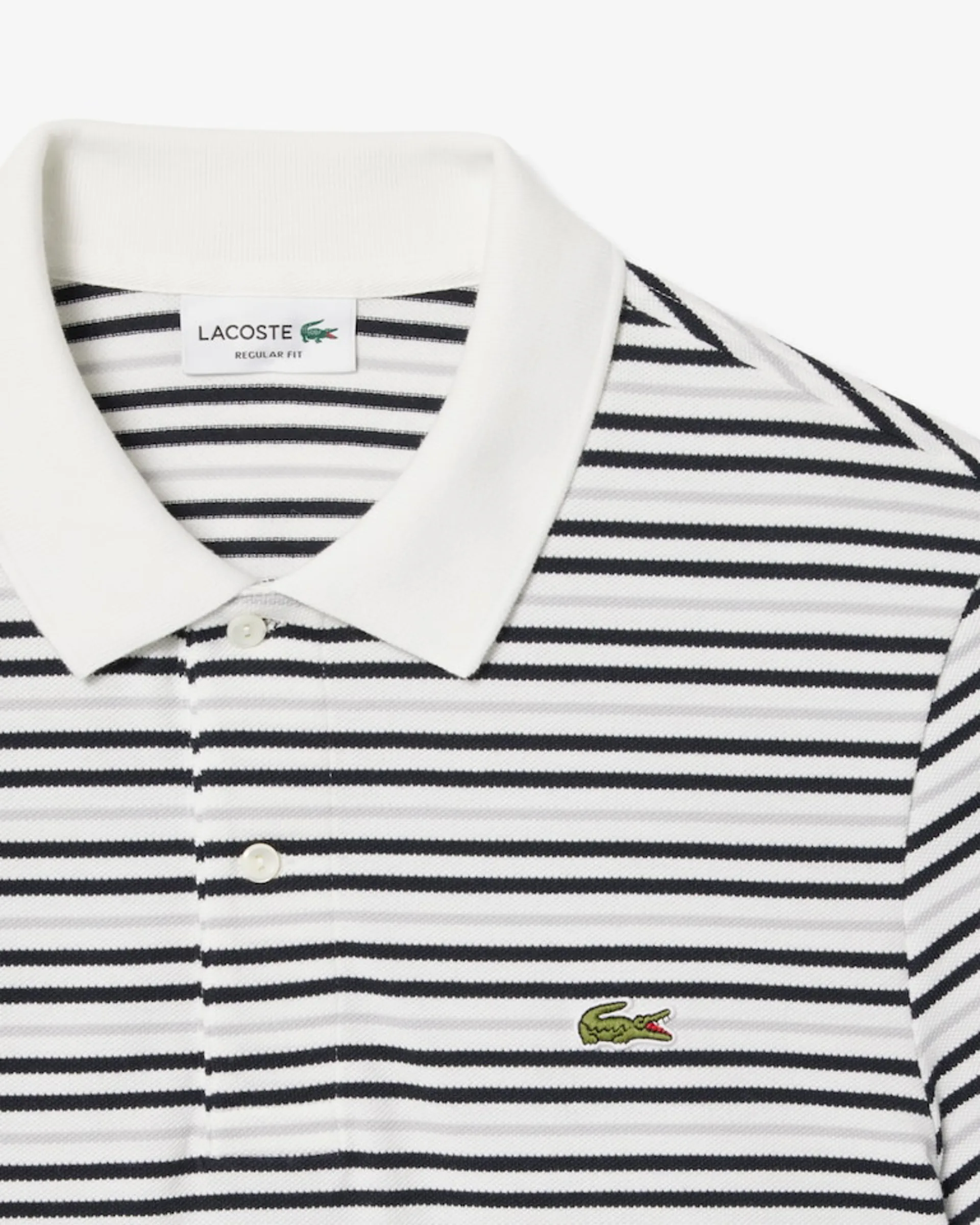 Question(s) answered about Lacoste Classic Fit Striped Pique Polo T-shirt White