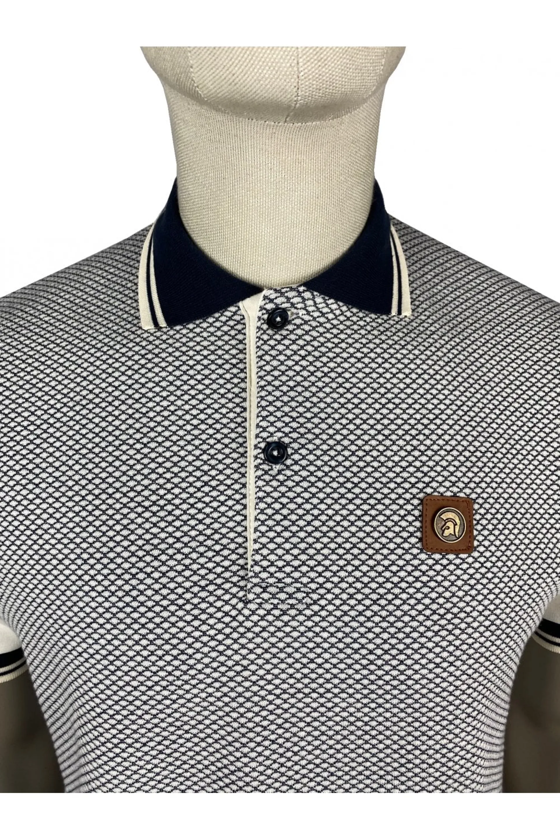 Trojan Jacquard Diamond Detail Polo Ecru XXXL ONLY