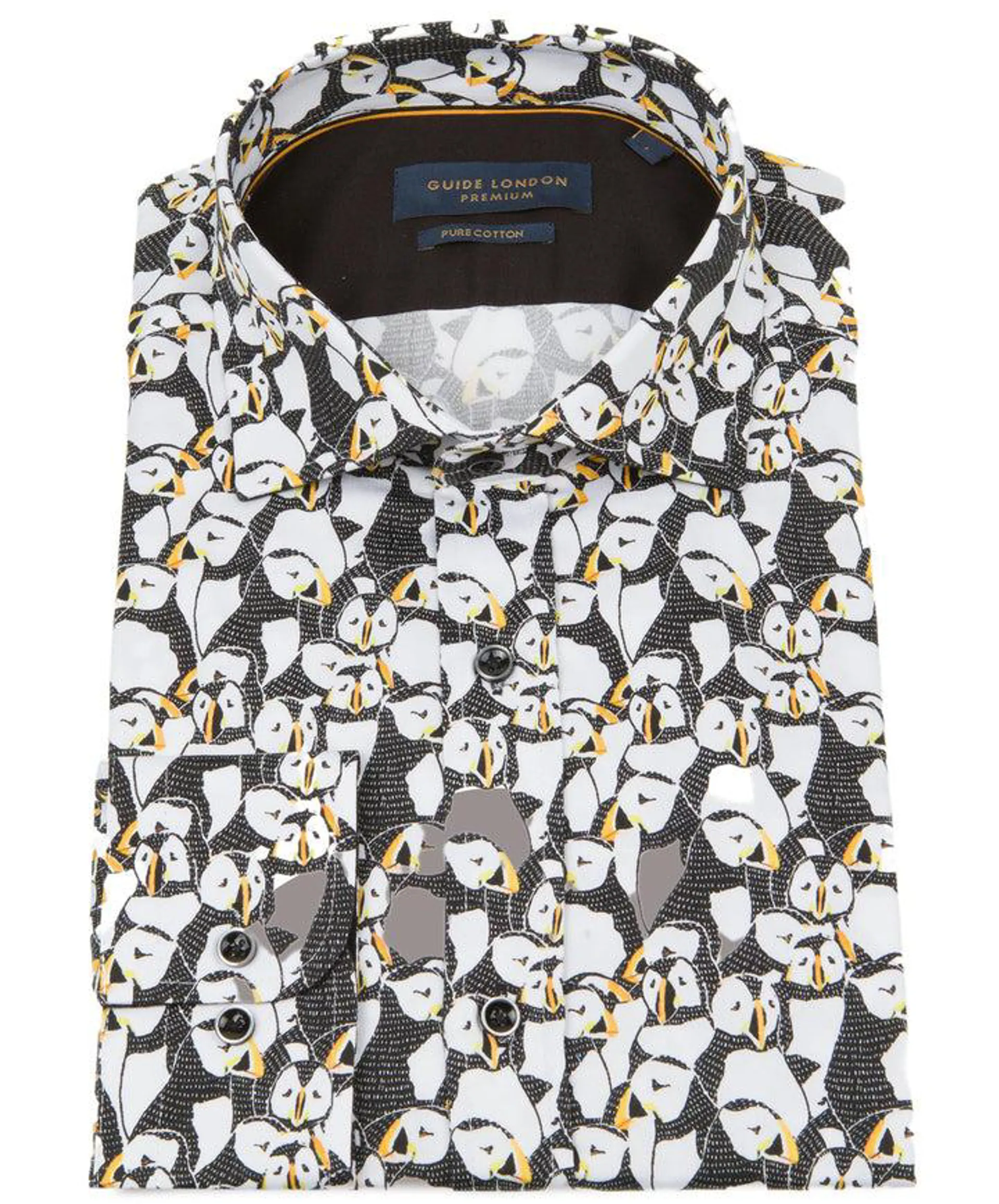 Guide London Puffin Print Shirt Black/White LARGE ONLY LAST ONE