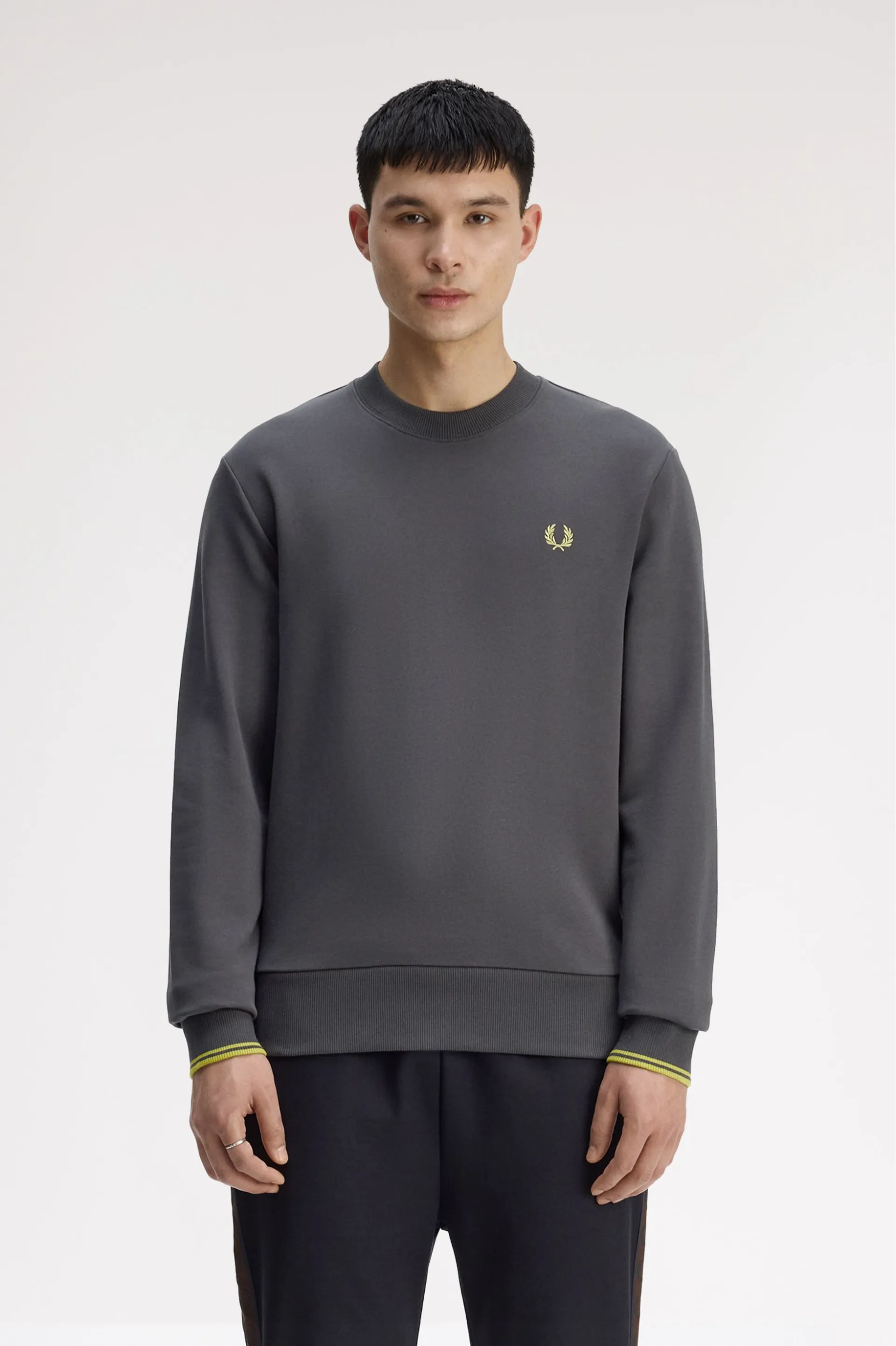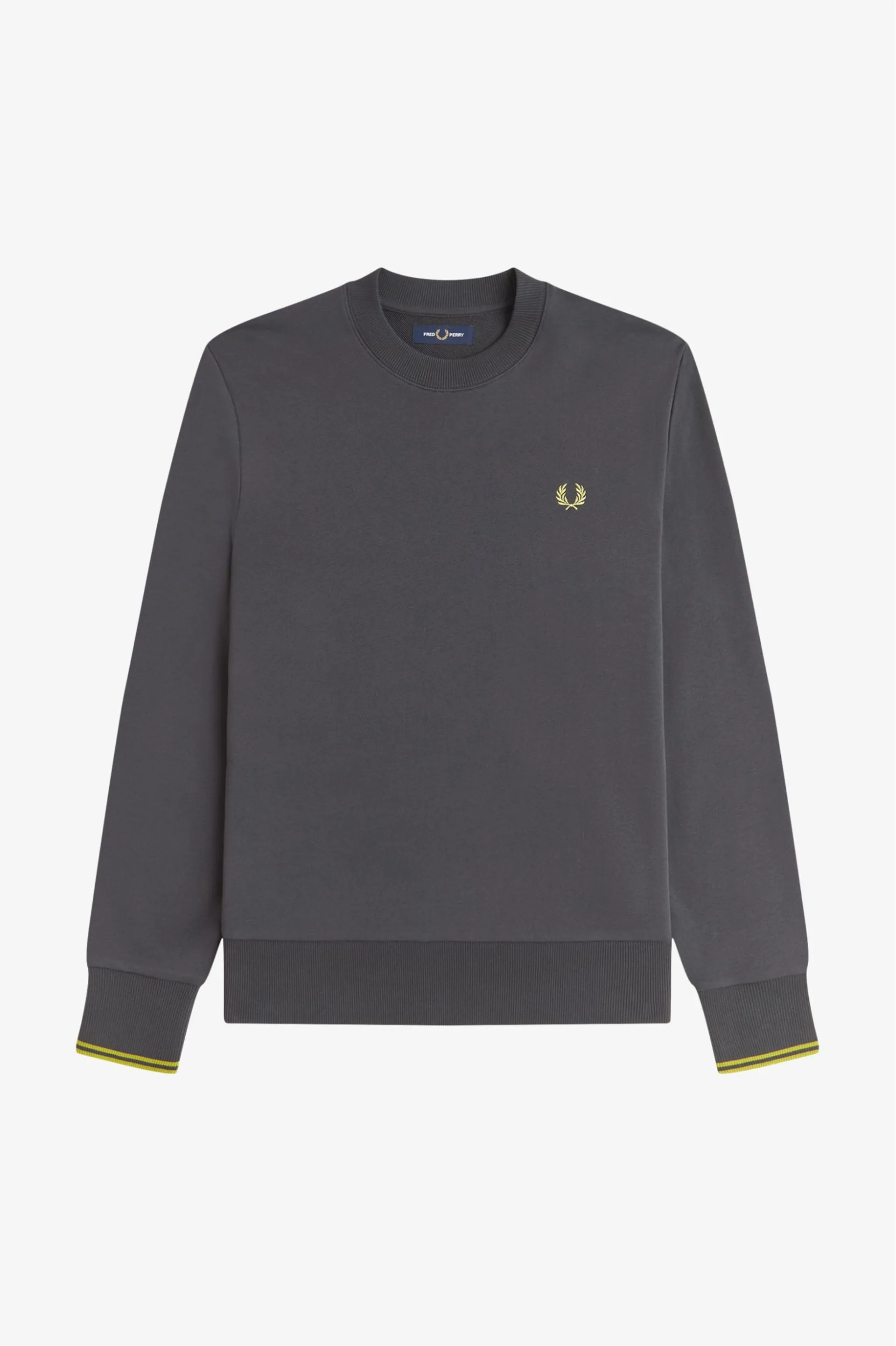 Fred Perry Crew Neck Sweatshirt Anchor Grey / Tennis Ball Yellow