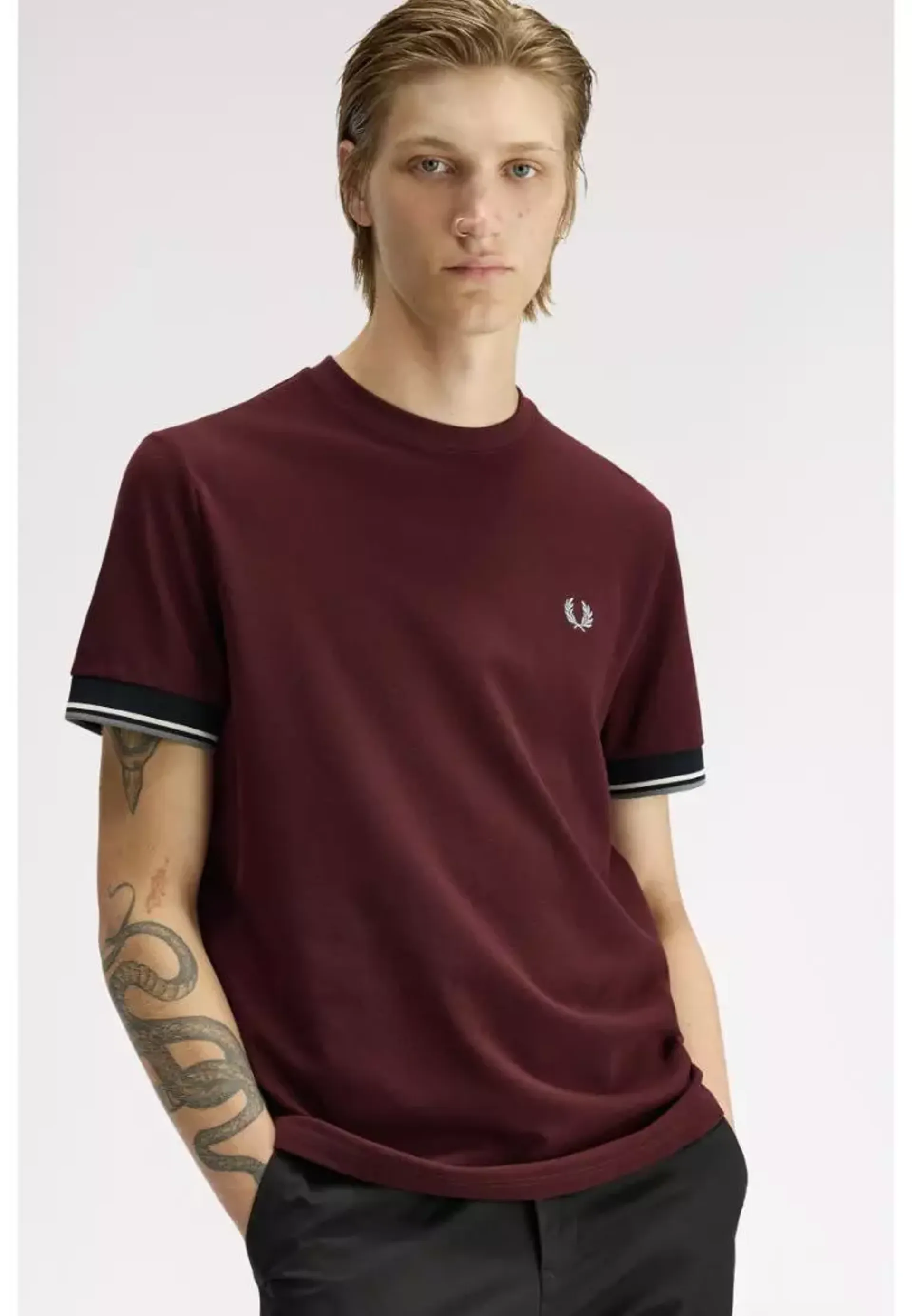Question(s) answered about Fred Perry Tipped Cuff T-shirt Oxblood