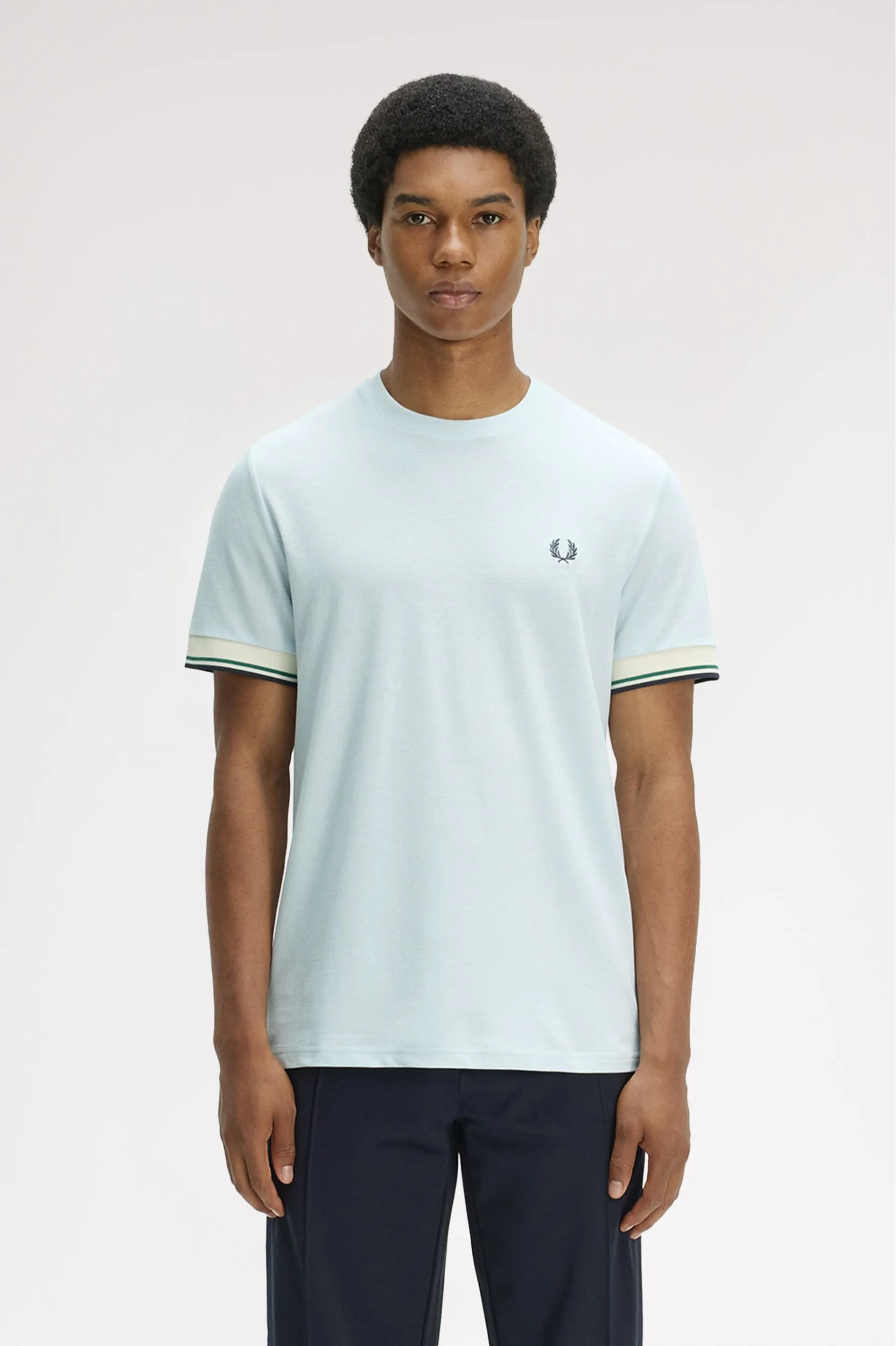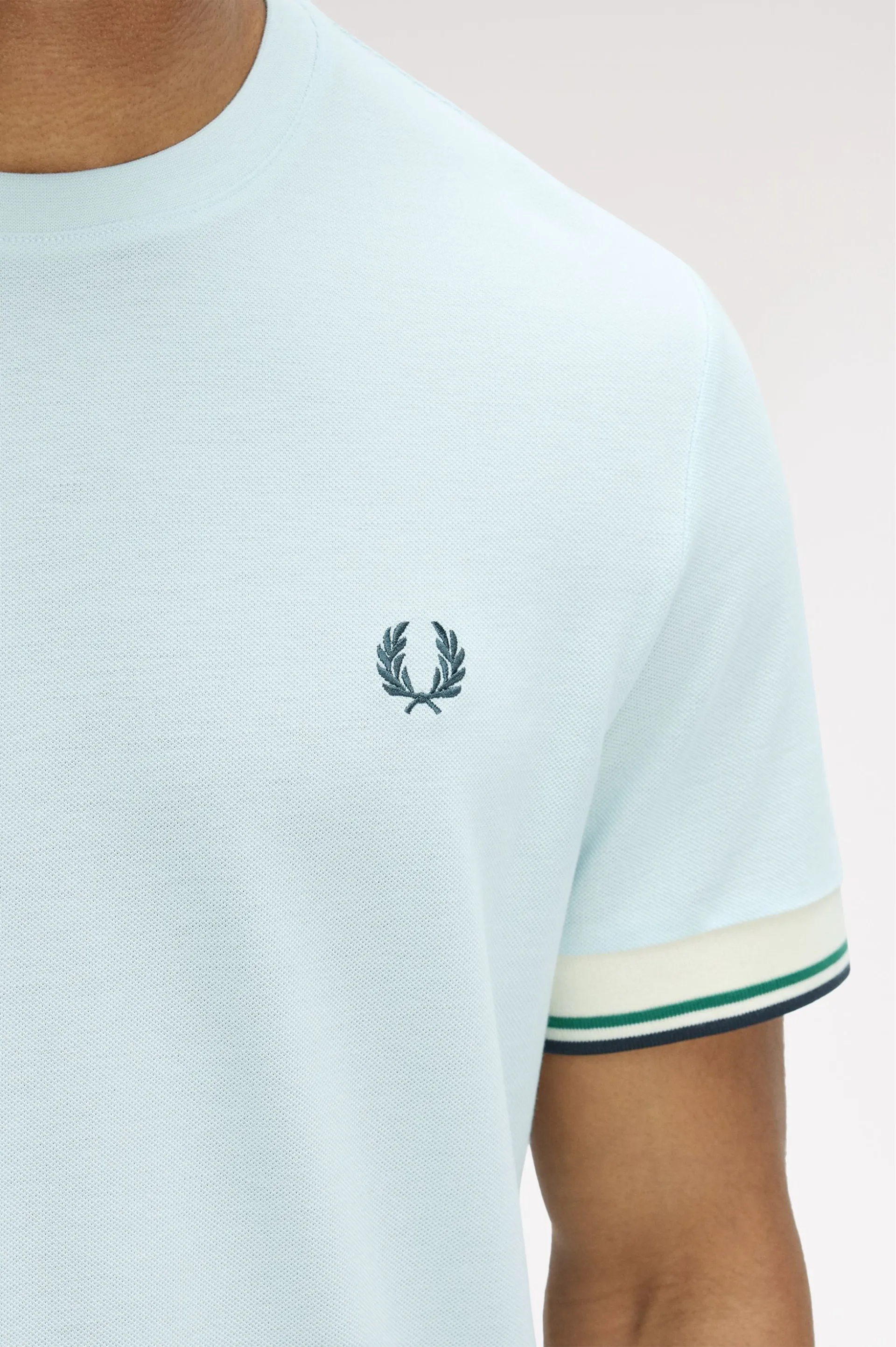 Question(s) answered about Fred Perry Twin Tipped Cuff T-shirt Light Ice