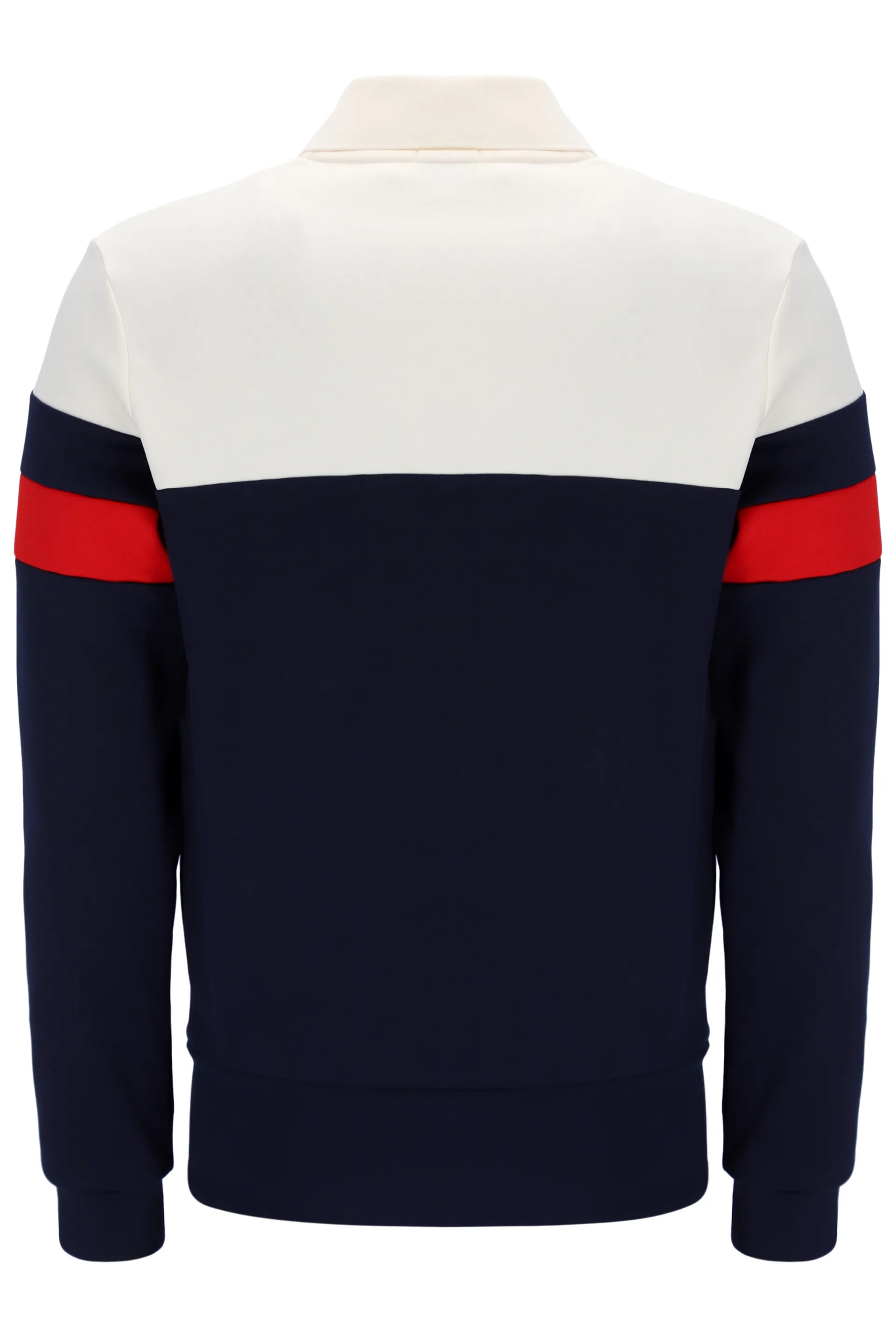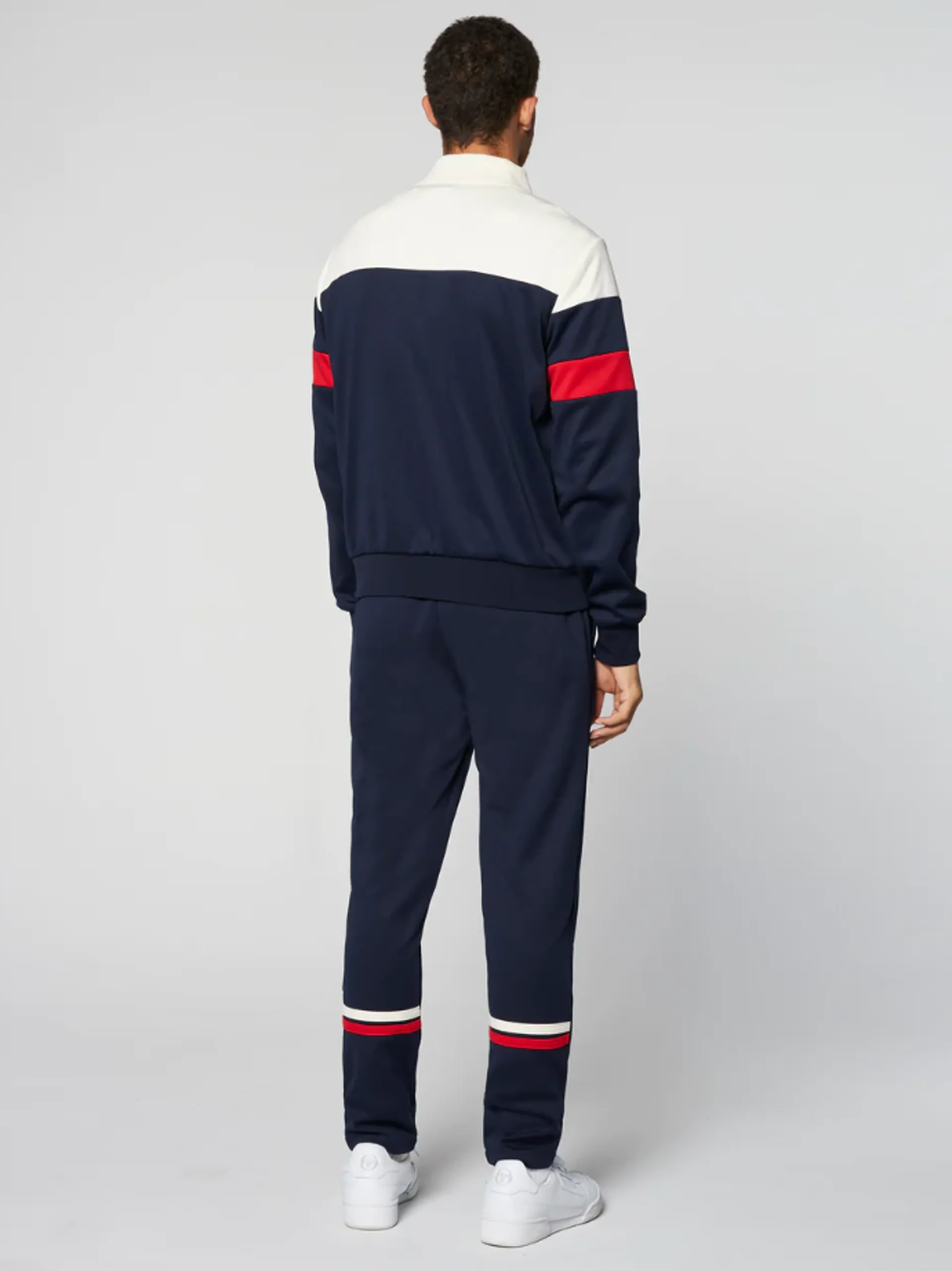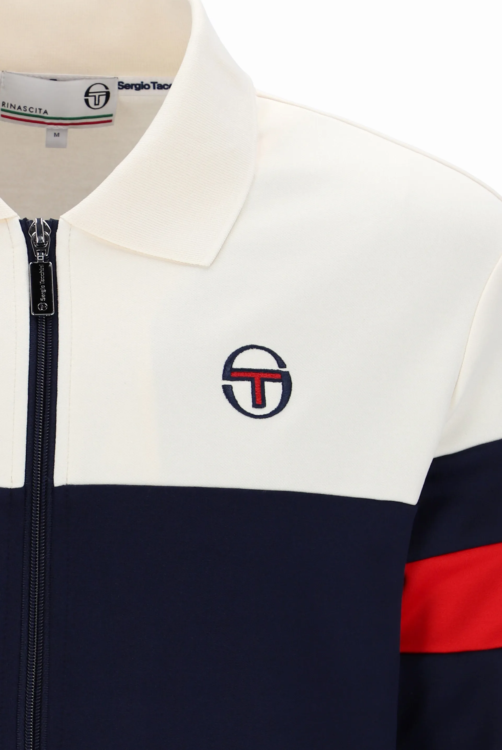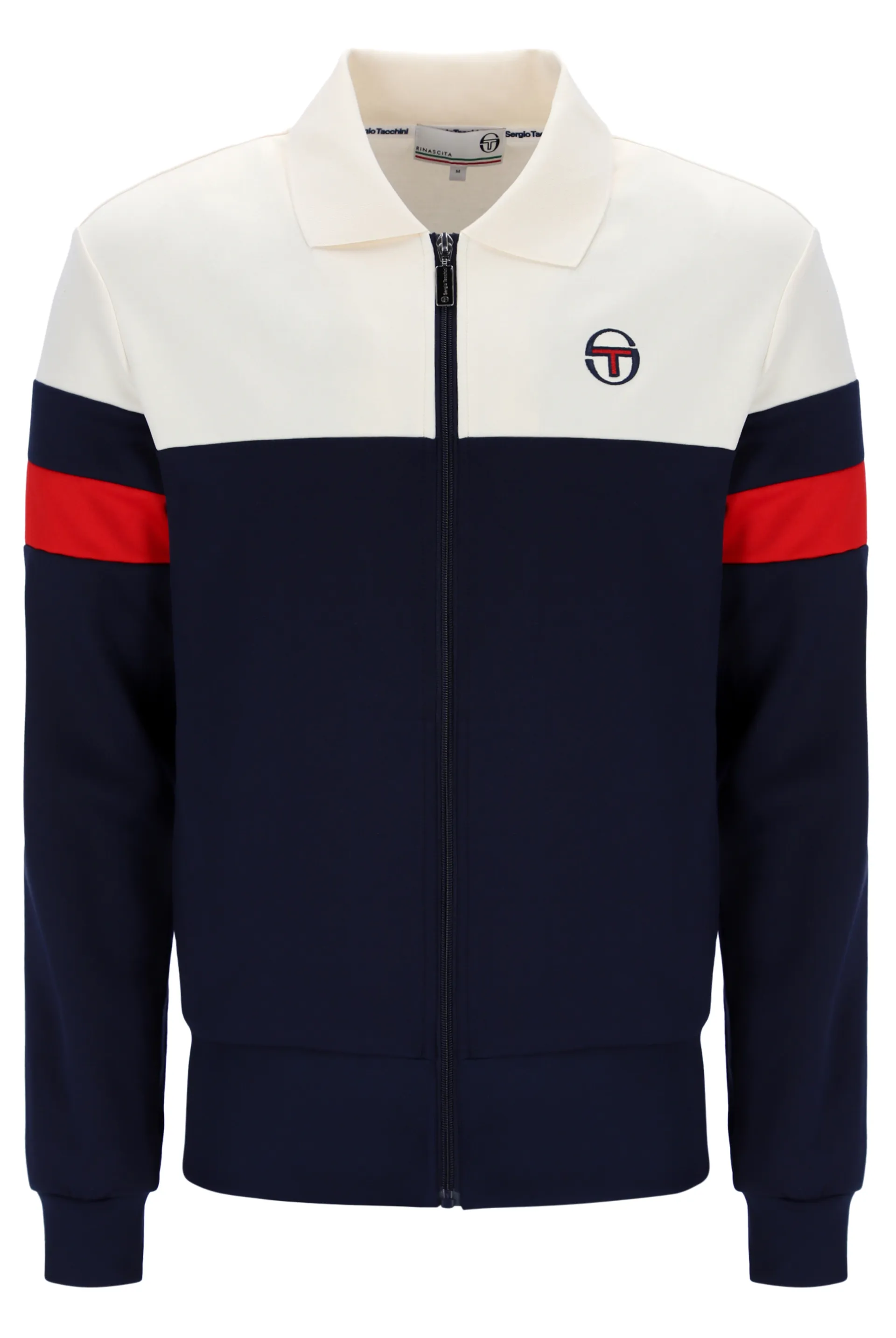 The Sergio Tacchini Tomme track top features an embroidered Italian tricolor 'ST' monogram logo at the left chest giving a nod to the brand's heritage