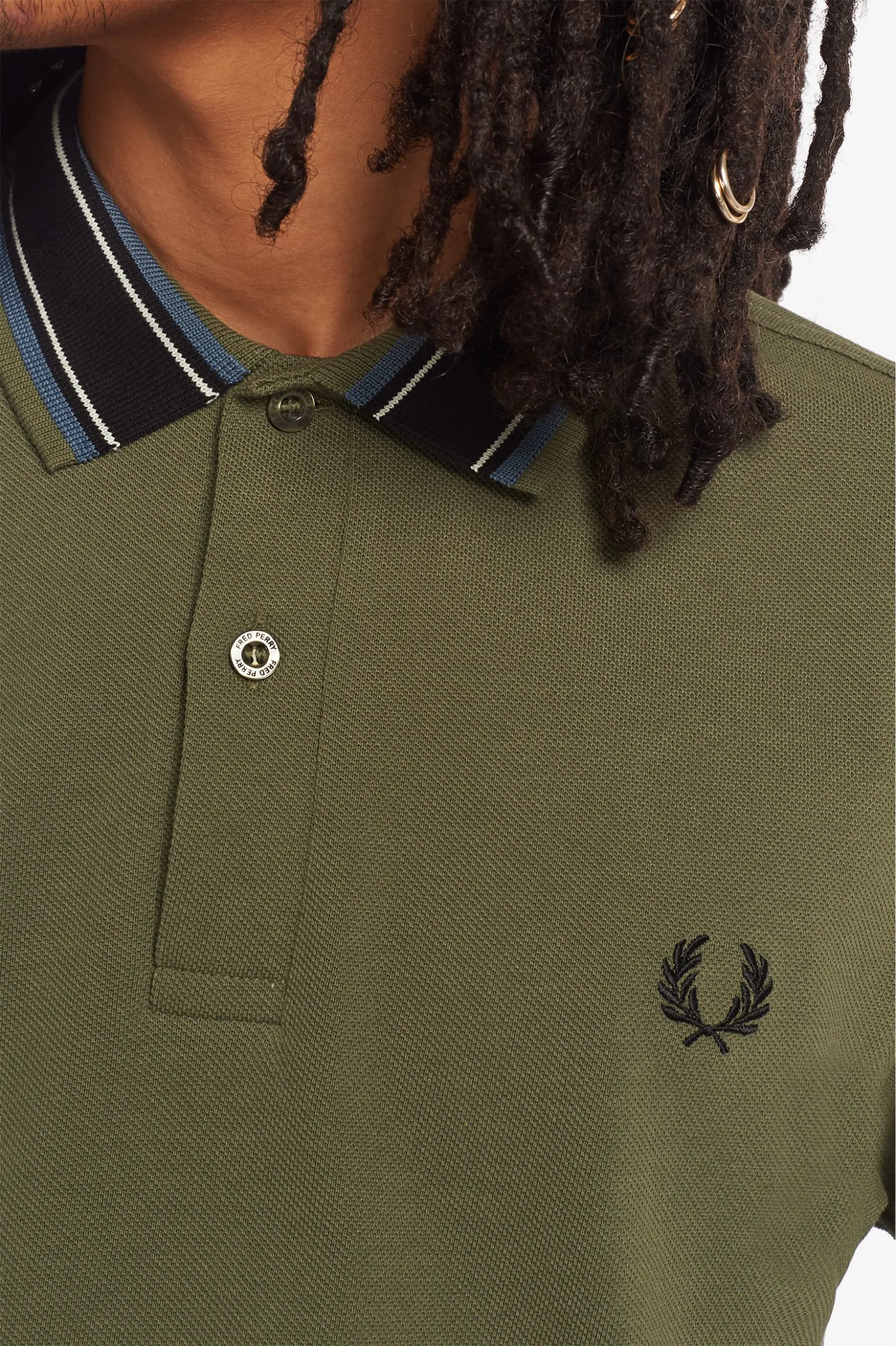 Question(s) answered about Fred Perry M3614-B57 Medal Stripe Polo T-shirt Military Green