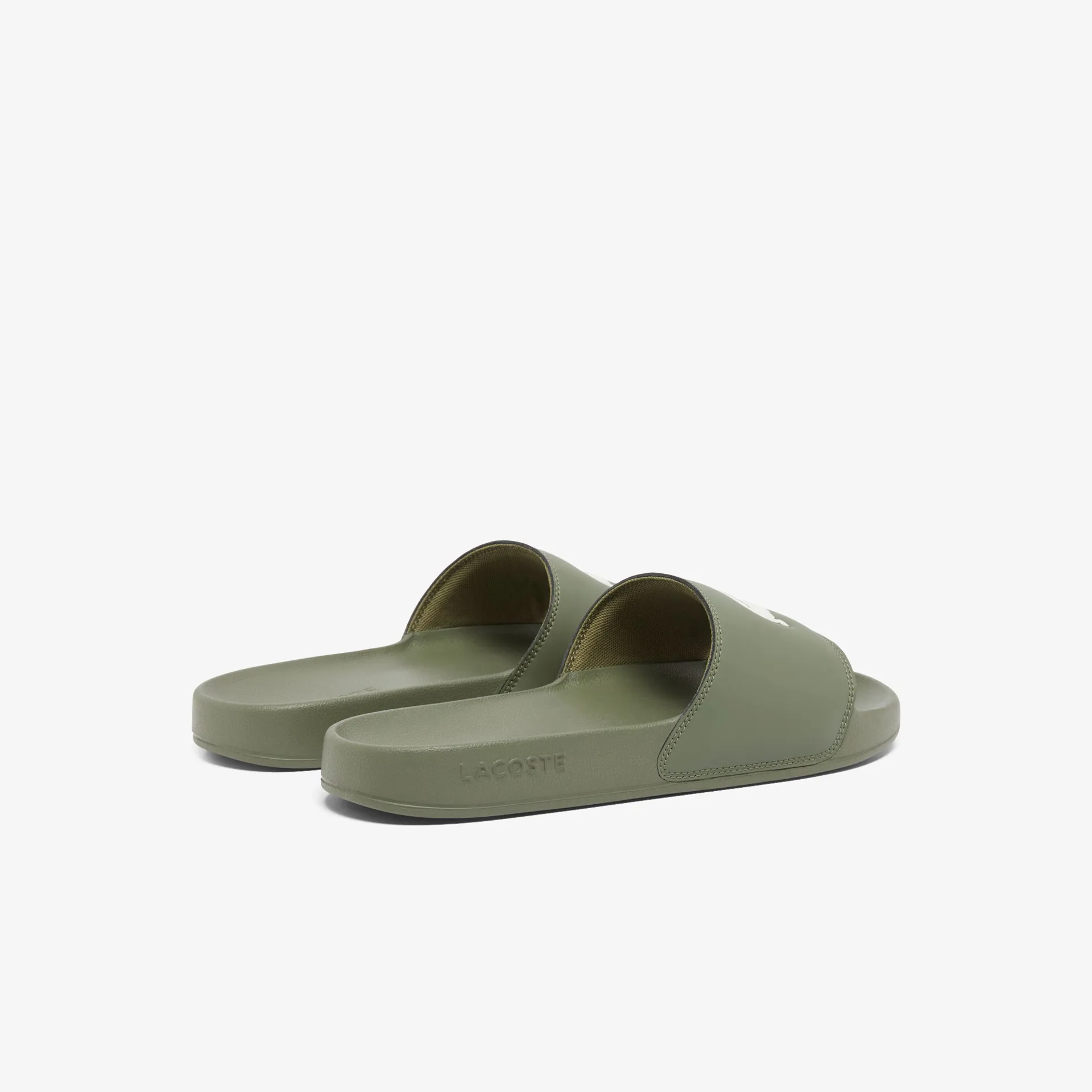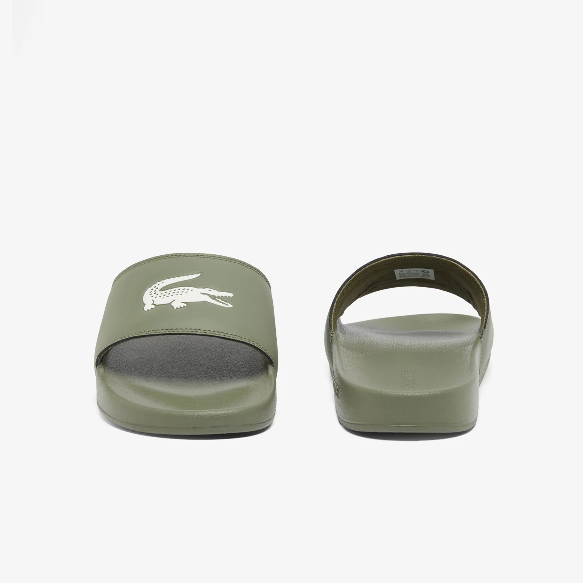 Lacoste slide featuring an ultra-comfortable EVA monobloc construction with molded arch support, plus an oversized crocodile and contrast branding for style