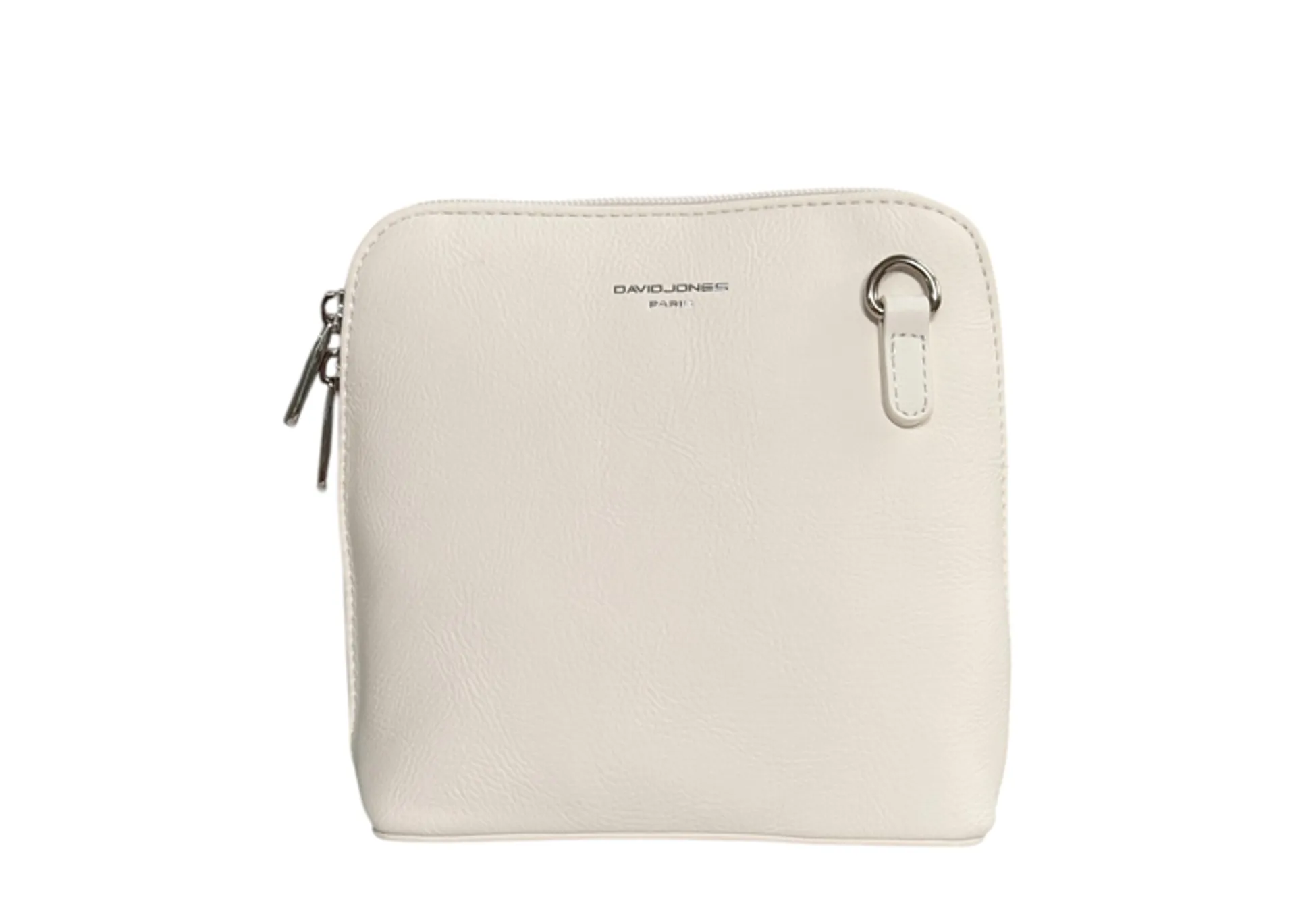 David Jones small square pouch bag. This bag has a removable strap. The outer zip opens 3/4 of the way round the bag. Inside the bag there are 2 compartments and 2 zipped compartments.