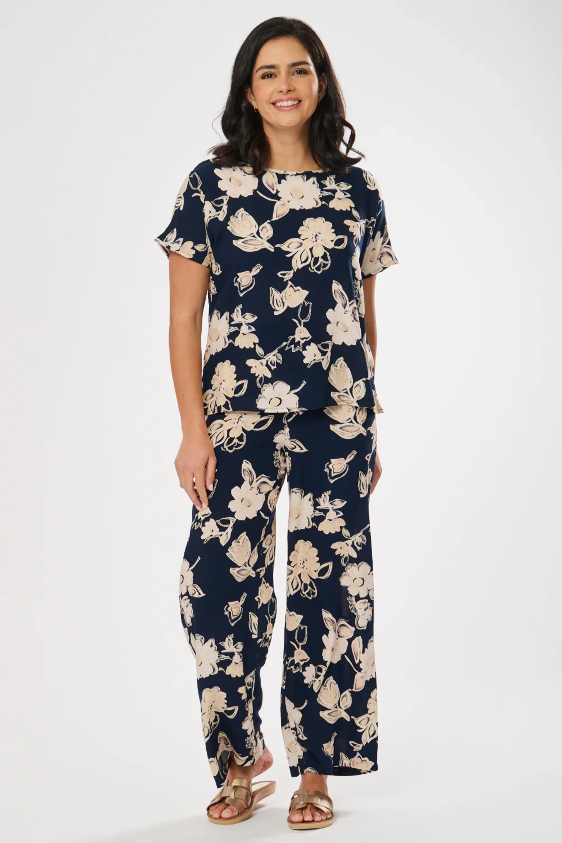 Write a review for Saloos floral trousers with mock tie waist Navy