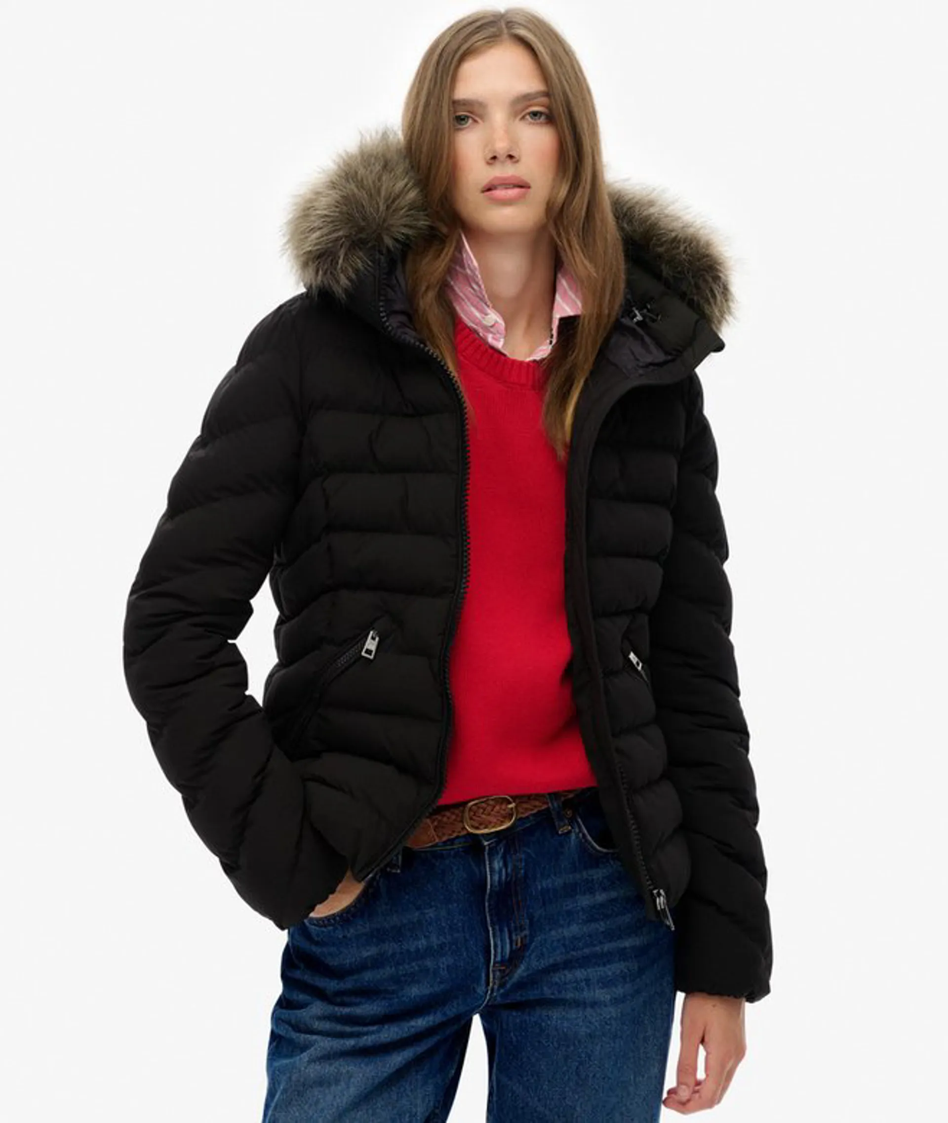 Balancing mobility and warmth with its lightweight yet luxuriously padded design,the Fuji Faux Fur Hood Padded Jacket is the perfect outdoor staple for all seasons.