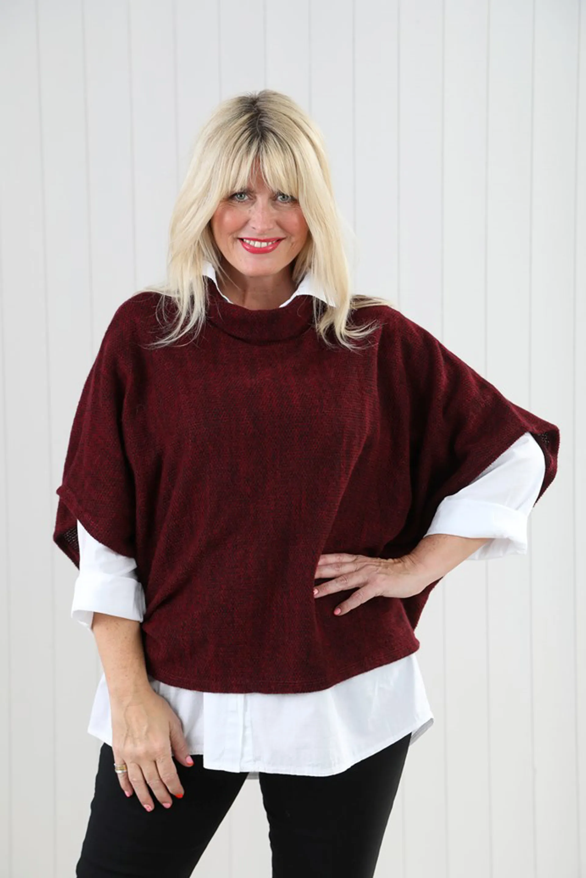 Goose Island cowl poncho top Bordeuax