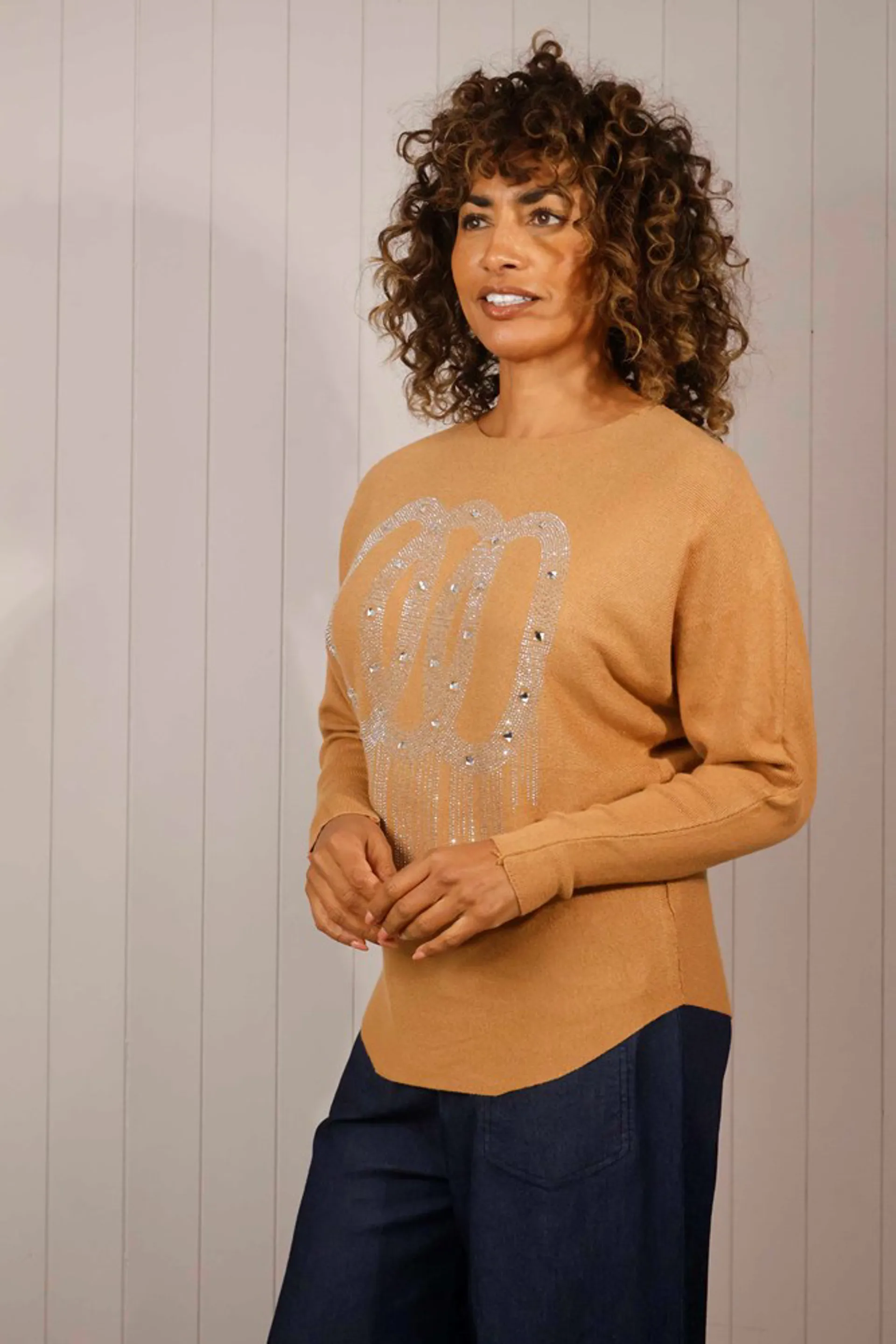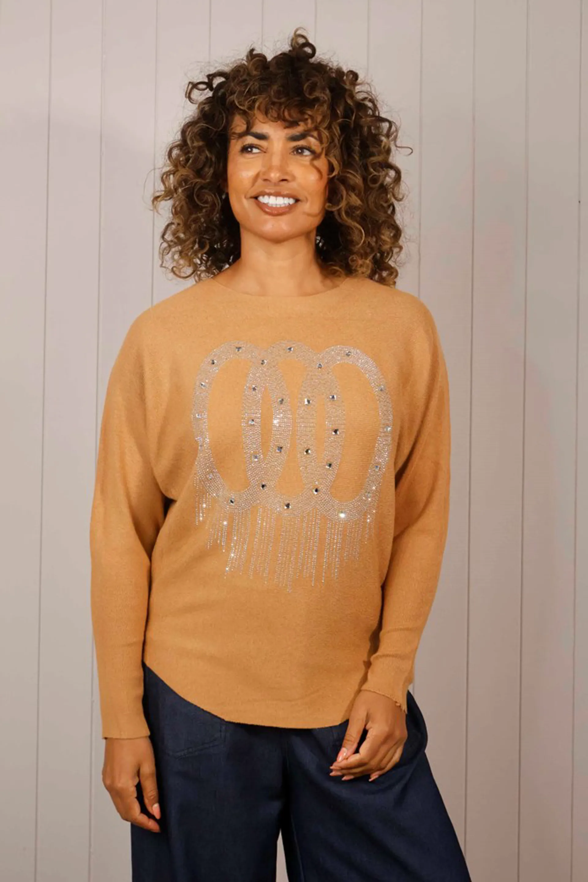 Question(s) answered about Goose Island rhinestone jumper Camel
